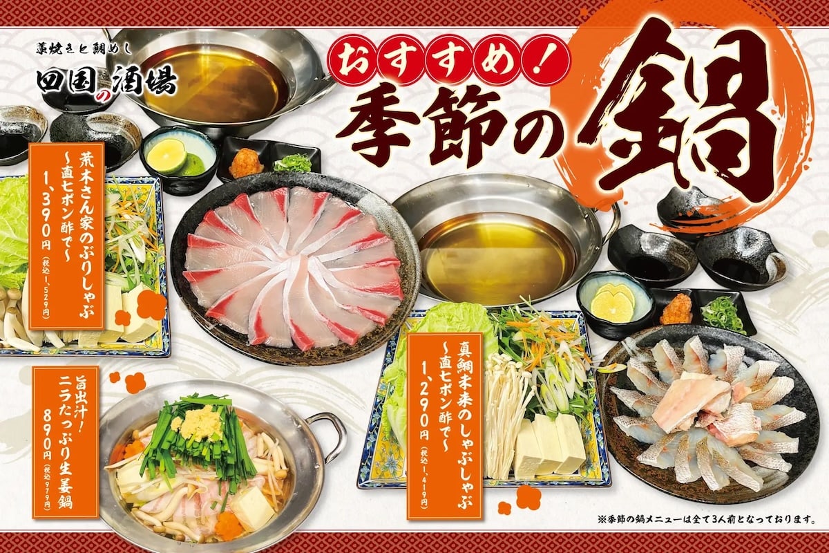 【関西エリア】「藁焼きと鯛めし 四国の酒場」1月21日(水)より、鰤のしゃぶしゃぶが新登場